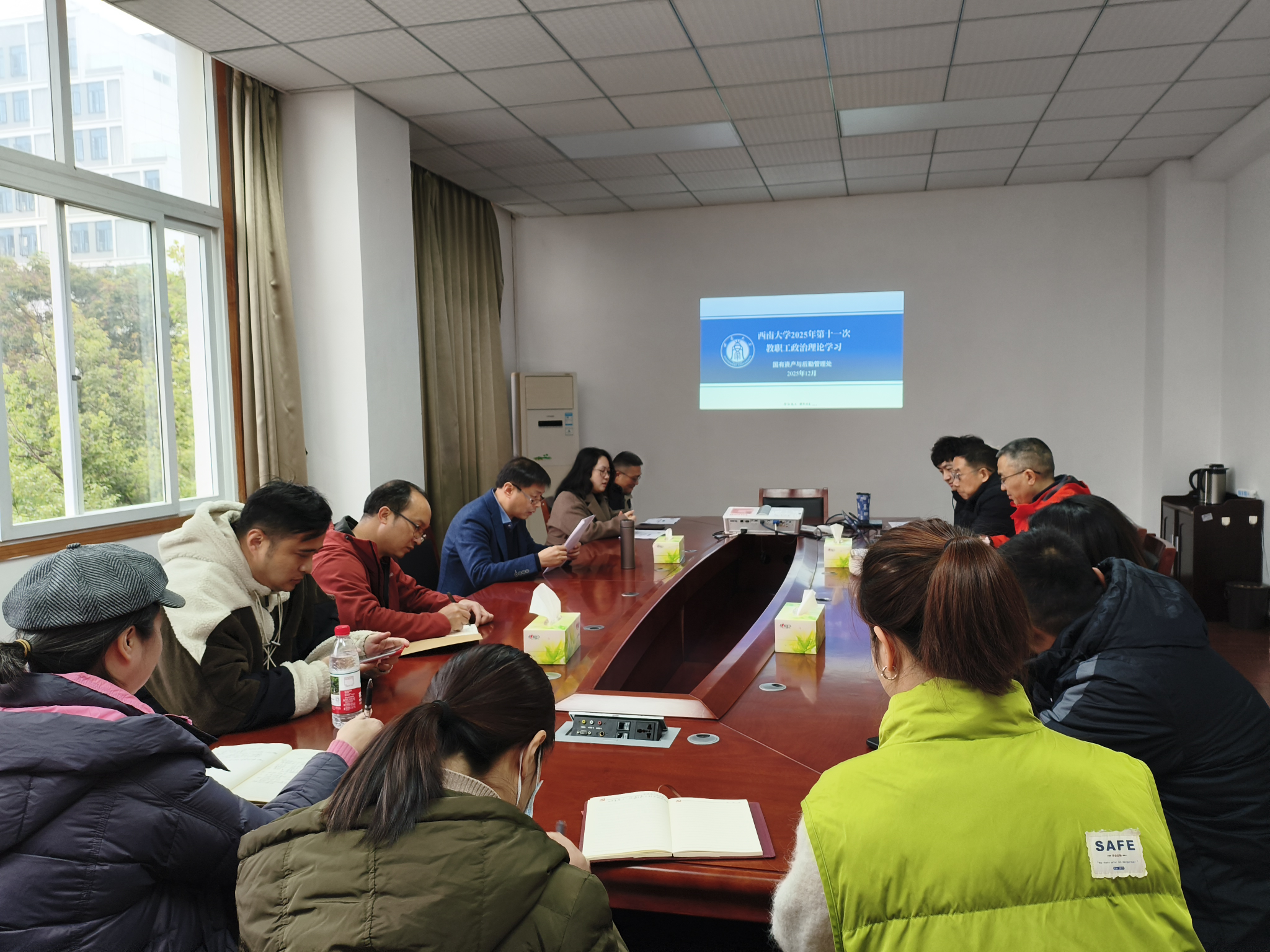 2025年12月5日,国有资产与后勤管理处在文俊楼514会议室开展了2025年第十一次政治理论学习,处长黄昌建主持会议。