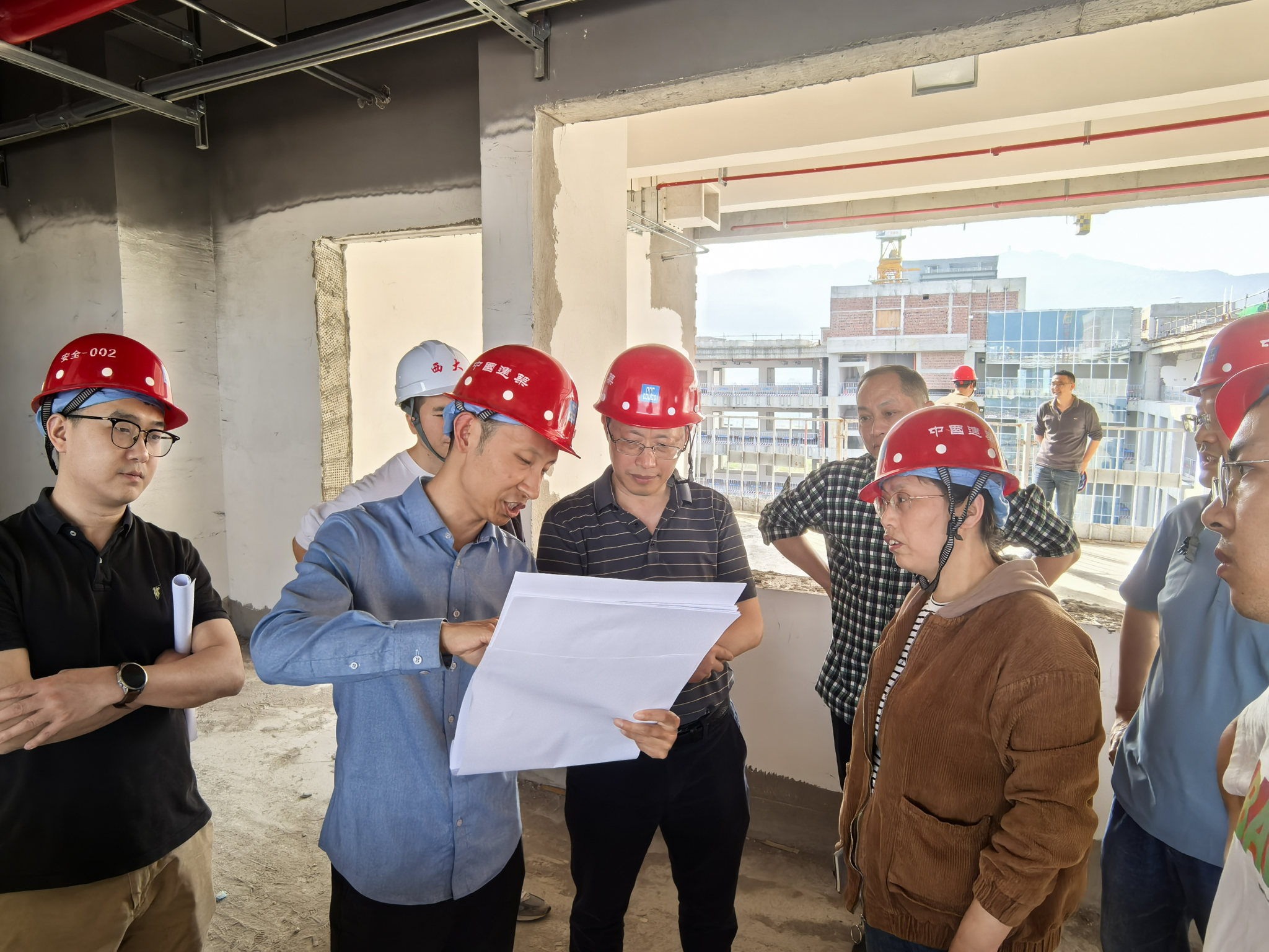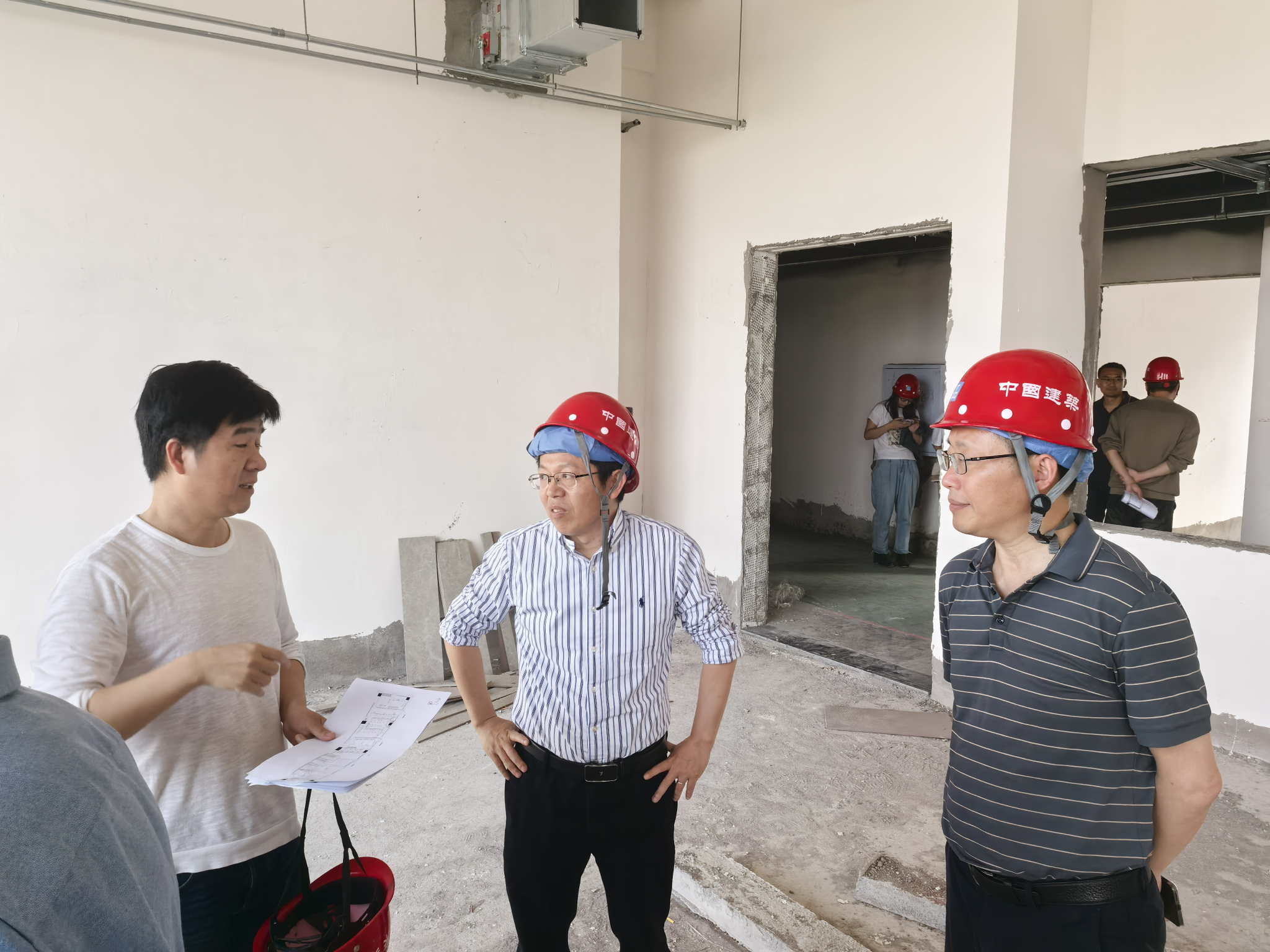 调研团队一行人在对照需求装修方案与楼层房间功能进行了全面查看,使用团队与项目设计施工方面对面探讨交流,按照项目实际建设情况,各入驻团队负责人结合实验室建设发展方向、学科研究特性、团队特点等,针对性提出后期建设需求,进行了深入探讨。各方逐一落实入驻团队提出的问题与需求,在保障消防安全、不改变原房间性质、不破坏原主体结构、合规拆建既有工程前提下,优化形成后续装修建设方案。