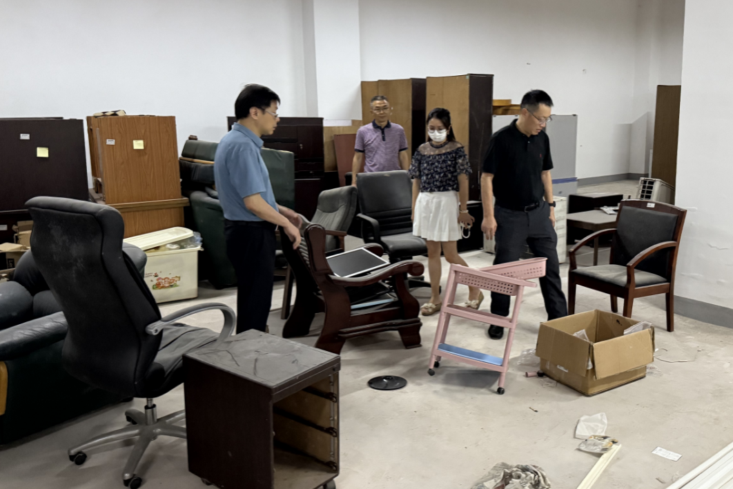 为深入贯彻落实中央八项规定精神,进一步加强党的作风建设,倡导厉行节约、反对浪费,近日,国有资产与后勤管理处(以下简称国资后勤处)处长黄昌建,副处长罗书强以及相关科室的工作人员就闲置家具资源的合理调配与再利用情况开展现场调研。